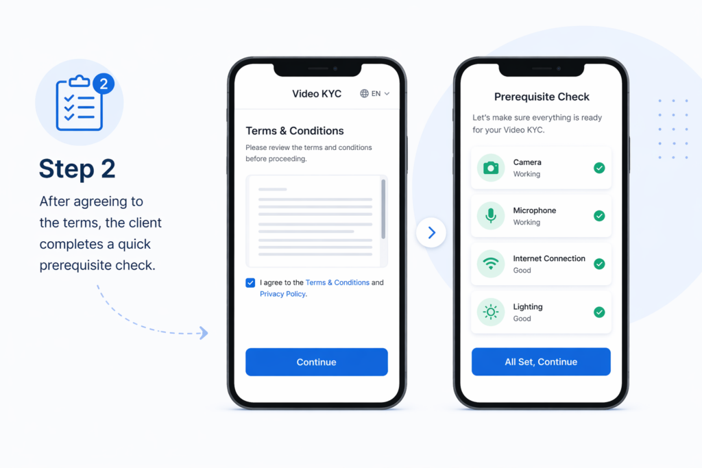 After agreeing to the terms, the client completes a quick prerequisite check.