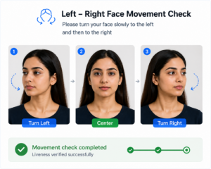 Customer is asked to turn face left and right. This helps validate depth, motion, and real human interaction.